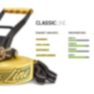 Med endast 2 % stretch i linan erbjuder Classic Line en stabil och pålitlig spänning som möjliggör uppsättning på längder mellan 3 och 13 meter, beroende på förankring. Linans låga sträckning gör det också möjligt att ha en låg installationshöjd för extra säkerhet.