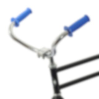 - Styre: Kromat styre med blå grepp.