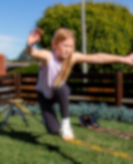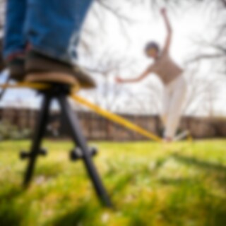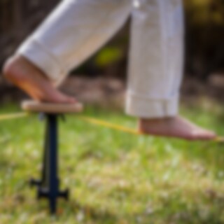 SlackYard är byggd för progression. Slacklinen kan justeras i längd från 1 till 5 meter, vilket gör det enkelt att börja kort och stabilt och sedan öka svårighetsgraden när balansen blir bättre.