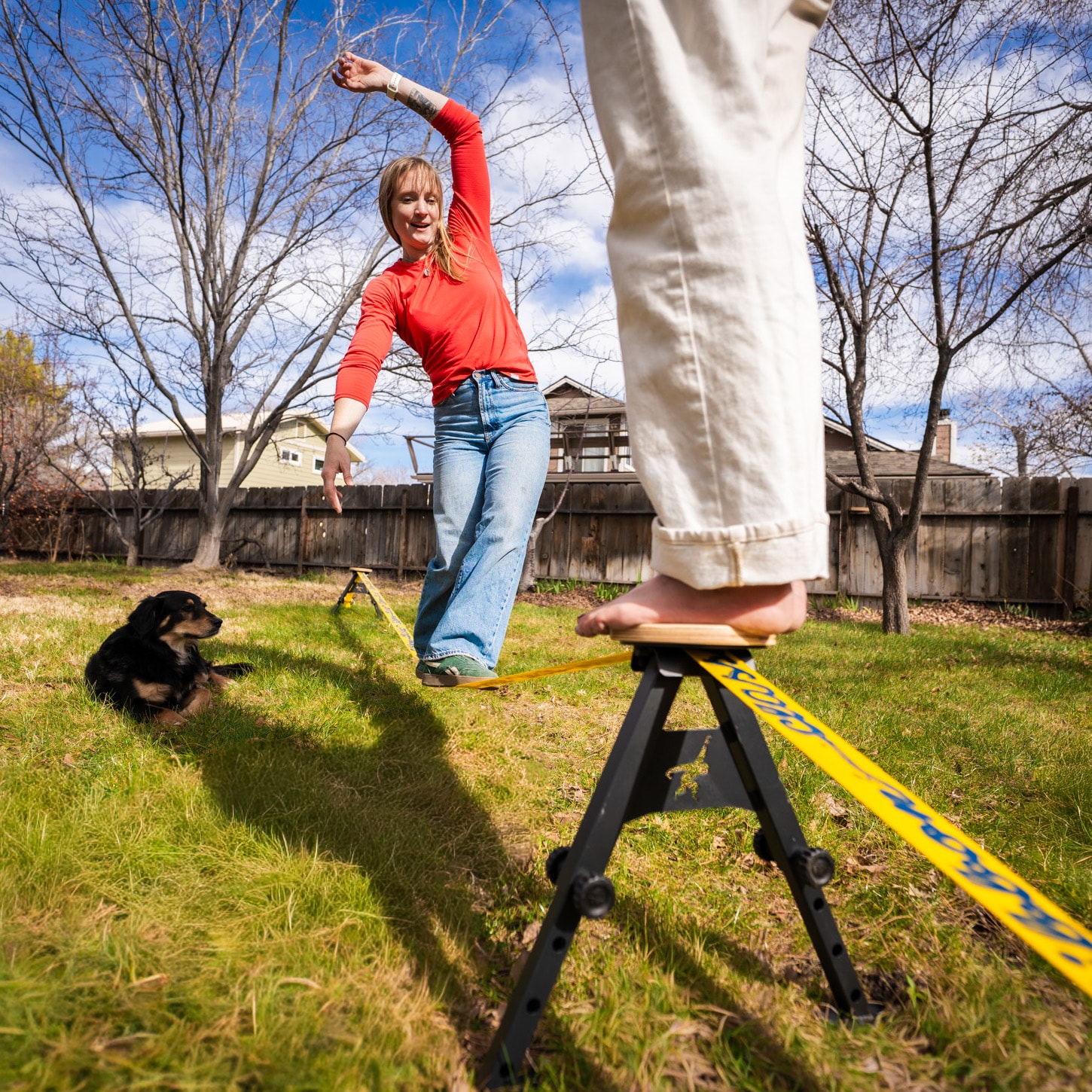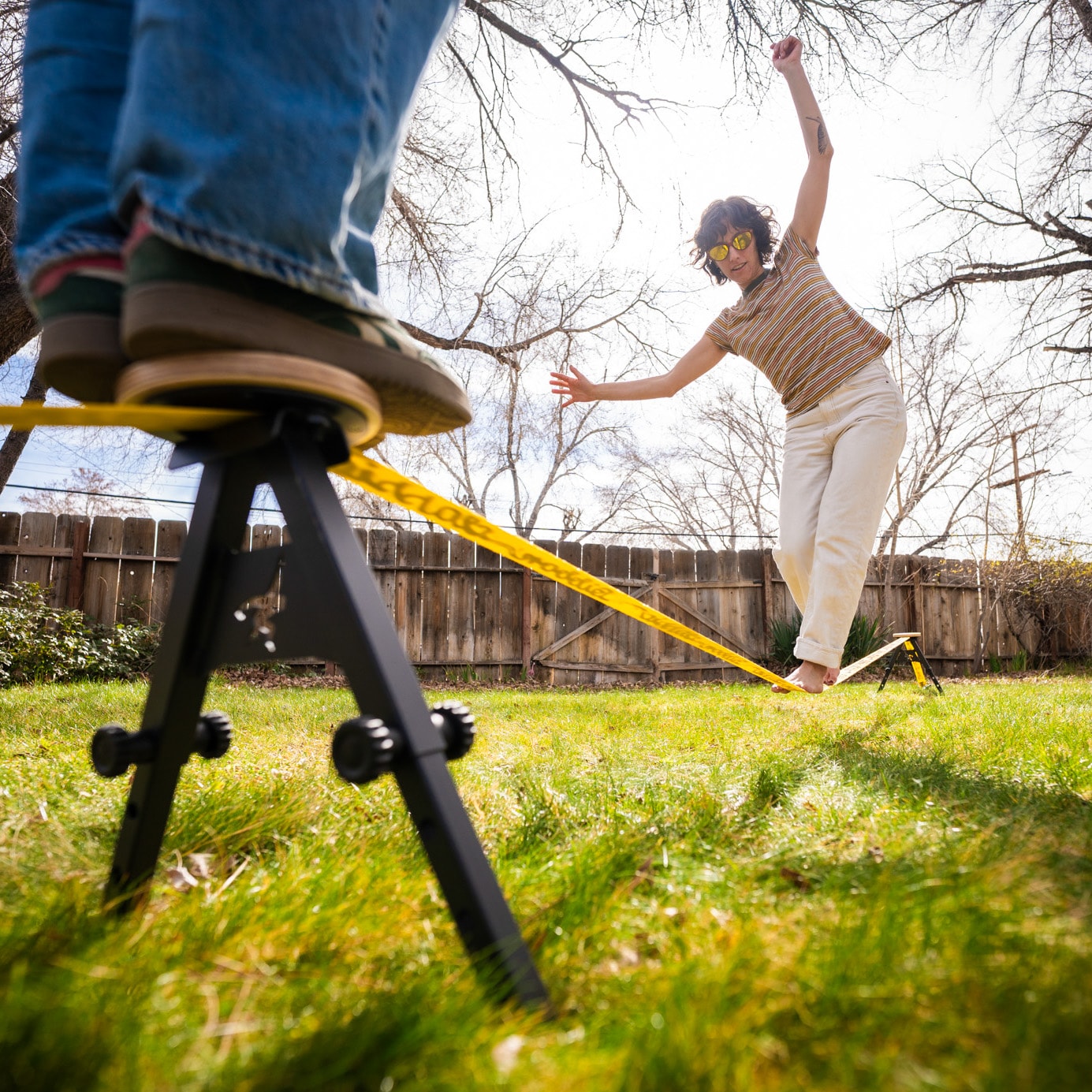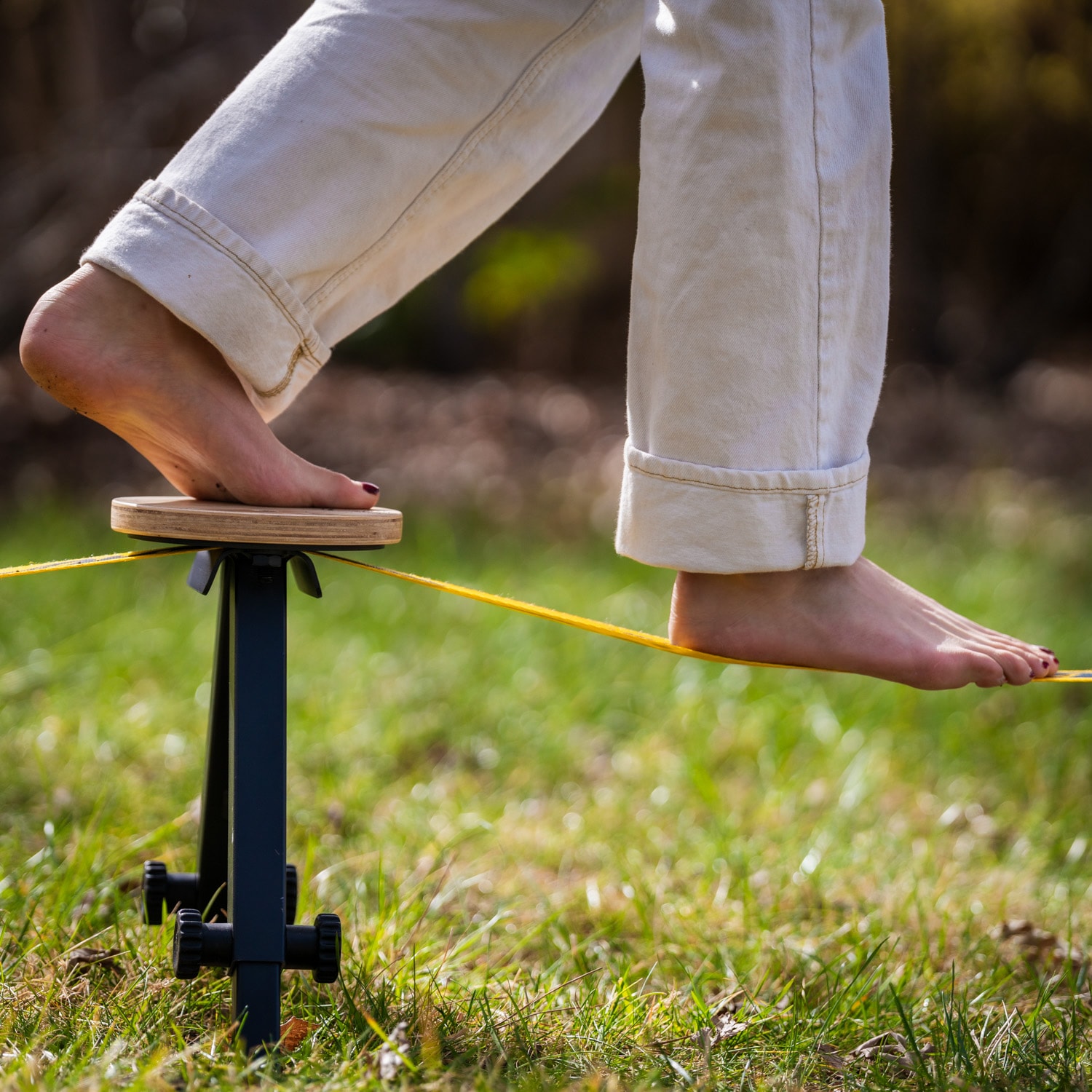 Med Gibbon SlackYard kan du skapa en egen slackline-zon i trädgården, på gräsmattan eller på annan naturlig mark. Systemet är helt fristående och kräver inga träd eller fasta fästpunkter, vilket gör det möjligt att slacklina nästan var som helst där marken är fast nog.
