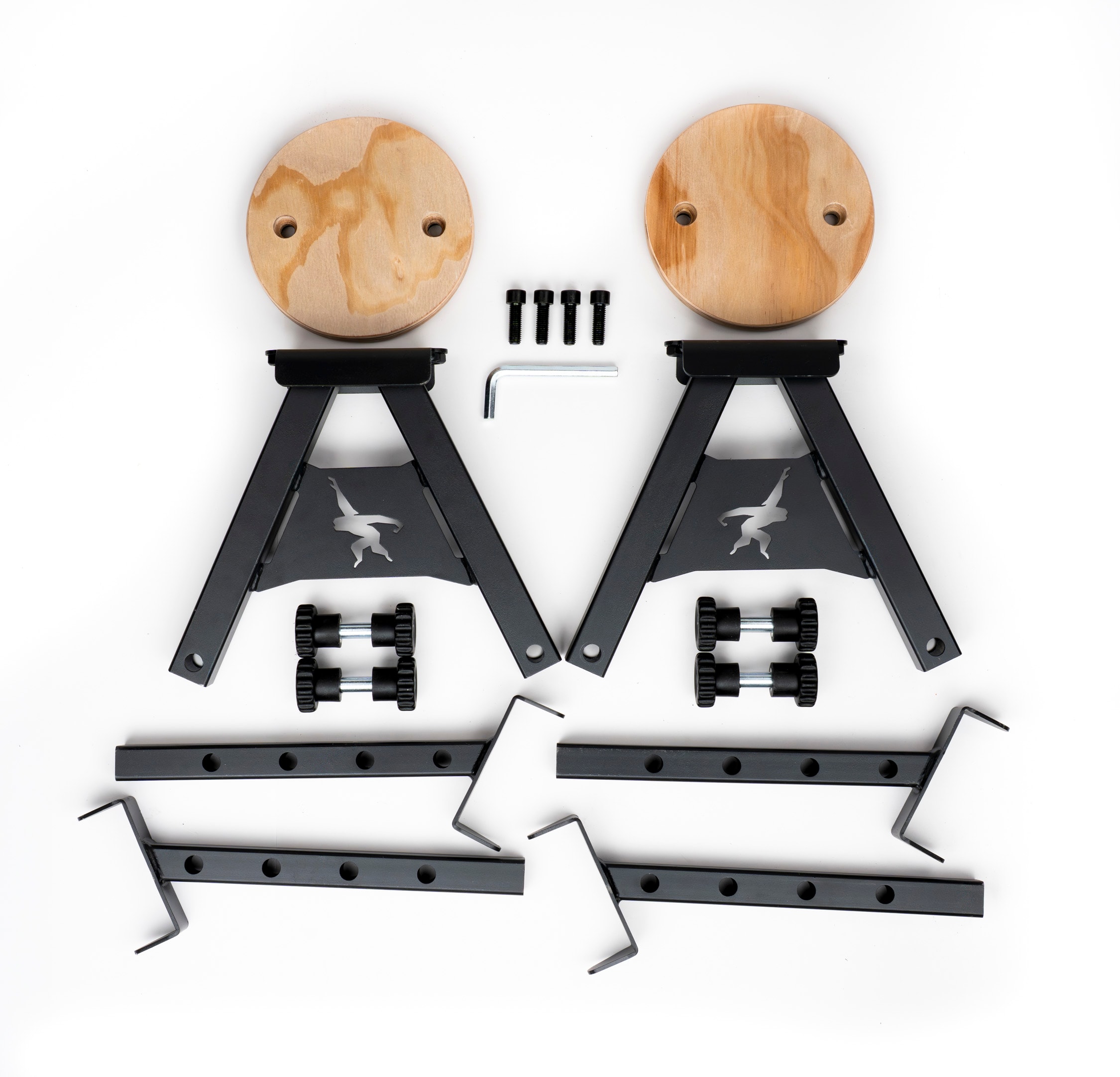 För maximal stabilitet används markankare med fyra jordskruvar på varje sida. Dessa fästs i marken och ger ett mycket stabilt fundament för slacklinen. Tillsammans med de robusta träplattformarna och den pulverlackerade stålramen skapas ett system som är byggt för långvarig användning utomhus.