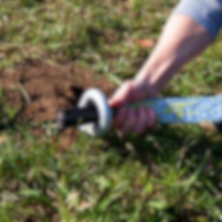 Den 70 cm långa skruven är tillräckligt djup för att ge stabilitet i de flesta typer av underlag. Med en bredd på 20 cm vid plattan skapar den ett hållfast grepp i marken.
