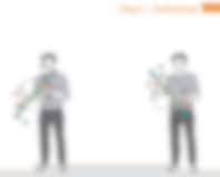Dina underarmar ska vara horisontella, parallella med varandra och ungefär axelbrett isär. Placera M1 på devil sticken i din utsträckta högra hand. Kasta uppre enden av devil sticken åt vänster. Innan devil sticken blir horisontell, bromsa lätt den övre delen vid M1 med din utsträckta vänstra hand genom att lätt röra handen utåt.