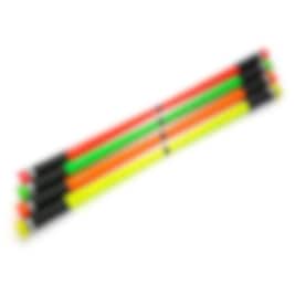 Ditt flower/devil stick-set består av ett flower/devil stick och två handstickor med silikonöverdrag. Devil sticken är smalare i mitten än vid ändarna. Dessa ändar har större massa, vilket gör att devil sticken kan svänga mjukt fram och tillbaka mellan handstickorna. Silikonöverdraget ger handstickorna bra grepp på devil sticken och ger bättre kontroll under användning.