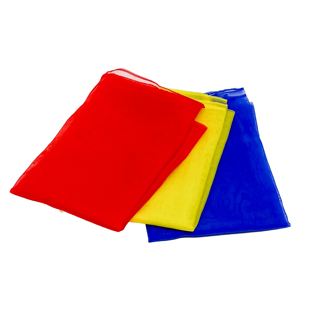 Dukarna mäter 70 x 70 cm och är tillverkade i slitstarkt nylonmaterial. De klara färgerna gul, blå och röd gör det lätt att följa rörelserna i luften, vilket hjälper dig att utveckla timing och koordination.
