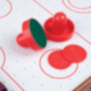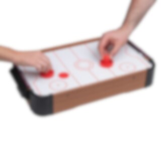 Air Hockey i bordsformat är ett fartfyllt skicklighetsspel för 2 spelare, byggt i MDF med paper-veneer-finish för en stabil och hållbar spelplan. Den inbyggda blåsenheten (blower/motor under spelplanen) gör att pucken svävar och glider nästan friktionslöst – vilket ger spelet en svävande, snabb och responsiv matchkänsla.