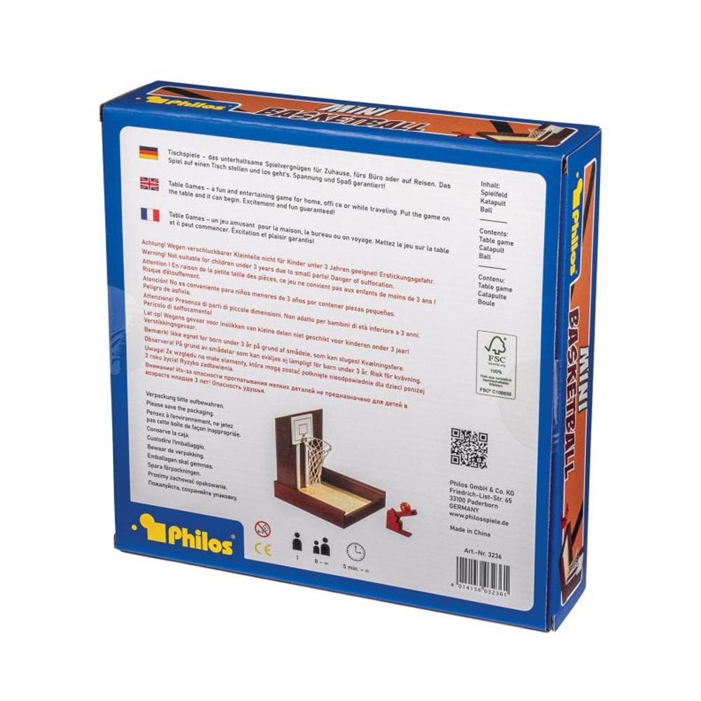 Mini Basketball är ett klassiskt bordsbasketspel i hevea-trä, designat för att ge snabb spelglädje och träning i varje skott. Tack vare sin smarta, kompakta design är spelet enkelt att ställa upp – lägg det på bordet och börja spela direkt. Du spelar själv (1+ spelare i turordning eller solo-utmaning) och kan snabbt tävla mot dig själv eller låta flera delta genom att turas om och räkna poäng.