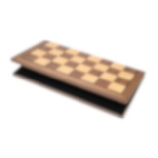 Material: schackpjäser i schimaträ, bräde i MDF med valnöts- och lönnfaner