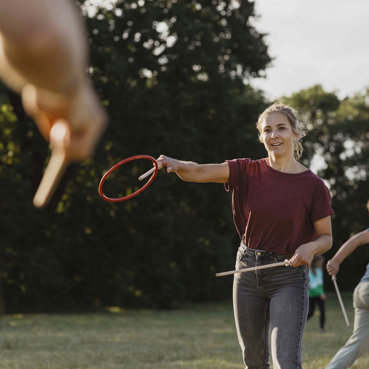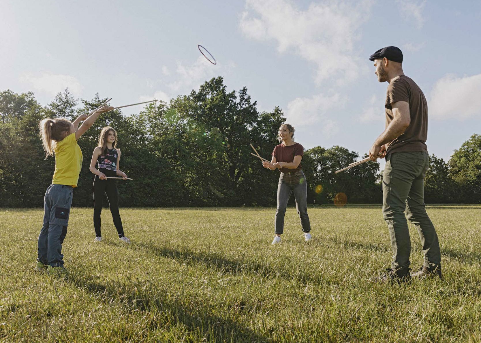 Med Tualoop kastar du inte bara en ring – du får den att sväva, studsa och flyga med precision. Spelet bygger på en enkel men genial teknik där ringen placeras på två korsade träpinnar. När pinnarna dras isär får ringen fart och lyfter genom luften i en mjuk, kontrollerad bana.